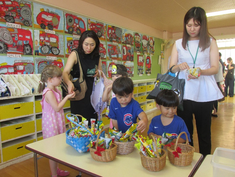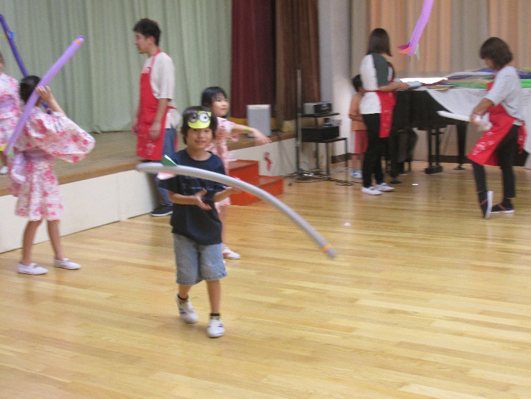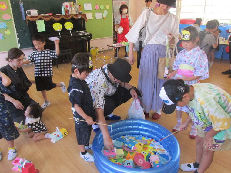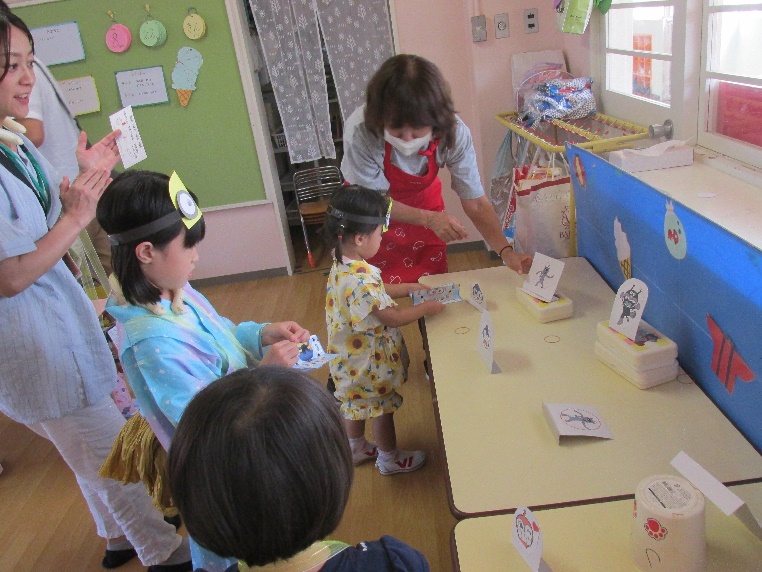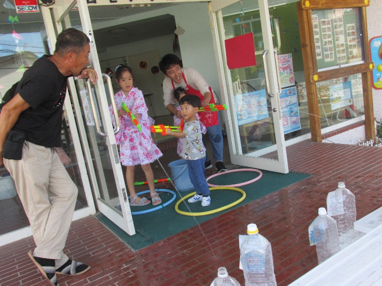 本日のスペシャルゲスト 腹話術のニッシャン堂さん アシスタントのヤッシャン堂さん? なに、あれ? どうなってんの? ずっと笑いっぱなし! まとあてゲーム さかなつりゲーム 水鉄砲シューティング 「狙ってるところ・・・?」 氷!「冷たくて気持ちいいなぁ」 元気にダンス・ダンス・ダンス 次は盆踊り 風船ロケットも飛ばしたよ 駄菓子屋さんでお買い物 いっぱいあそんでくれてありがとう! 参加賞や景品、いっぱいの荷物を持って「バイバーイ」 ようちえんブログ よかったらシェアしてね! URLをコピーする URLをコピーしました! 2025-8-21 夏期特別保育<さすてな京都> 2025-8-23 夏期特別保育<新聞フリスビー> 関連記事 2025-12-26 冬期特別保育 干支絵馬づくり&ちぎってかにぱん 2025-12-22 冬期特別保育 クリスマス製作 ~くびふりサンタ~ 2025-12-19 クリスマス会 2025-12-8 こうま・年少ボール大会 2025-12-5 年中サッカー大会 2025-12-5 年長サッカー大会 2025-11-22 学園祭 作品展 2025-11-14 作品展製作中