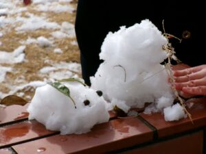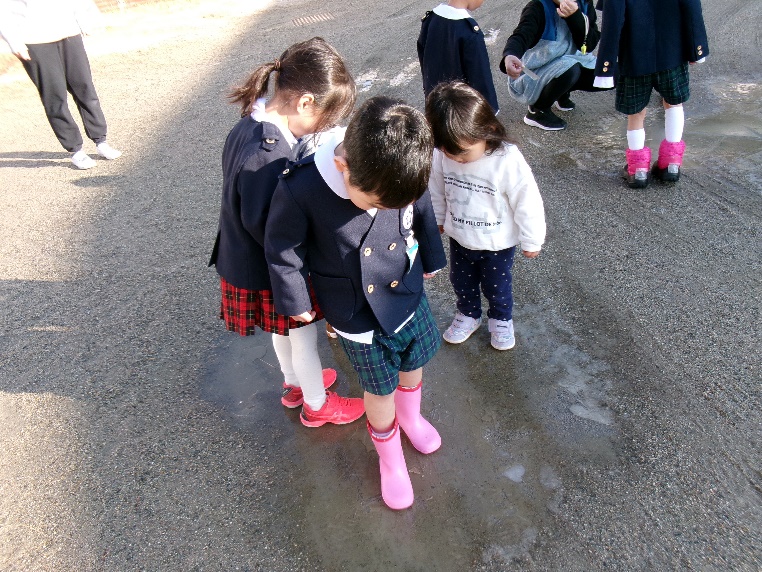 園庭のそこここに氷が張っていました 子ども達が3人乗っても割れません! 砂場には昨日の雪がまだ残っていました ようちえんブログ よかったらシェアしてね! URLをコピーする URLをコピーしました! 2026-2-9 雪が降りました! 関連記事 2026-2-9 雪が降りました! 2025-12-26 冬期特別保育 干支絵馬づくり&ちぎってかにぱん 2025-12-22 冬期特別保育 クリスマス製作 ~くびふりサンタ~ 2025-12-19 クリスマス会 2025-12-8 こうま・年少ボール大会 2025-12-5 年中サッカー大会 2025-12-5 年長サッカー大会 2025-11-22 学園祭 作品展