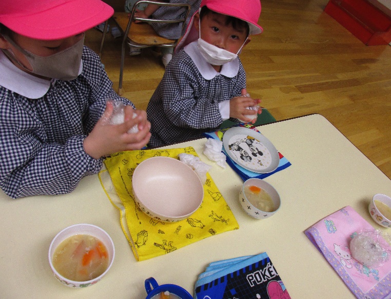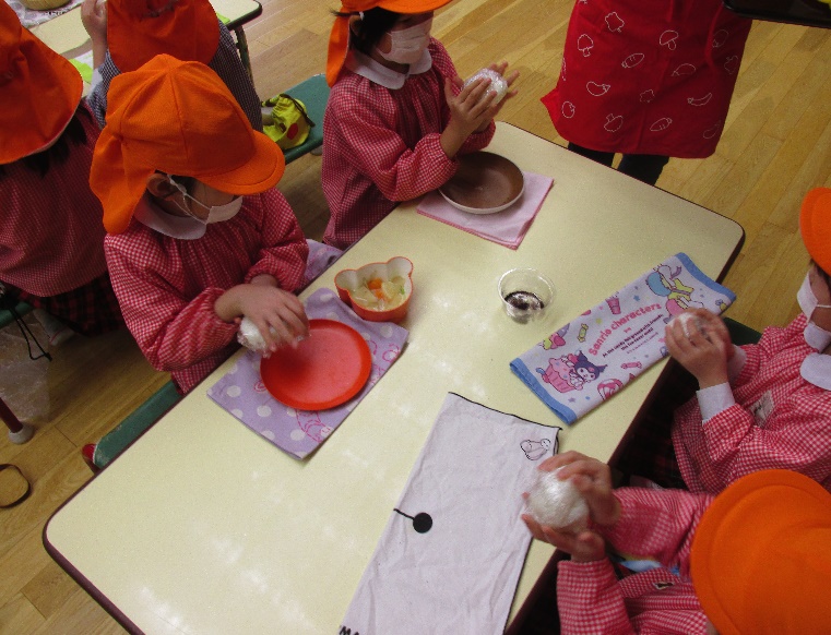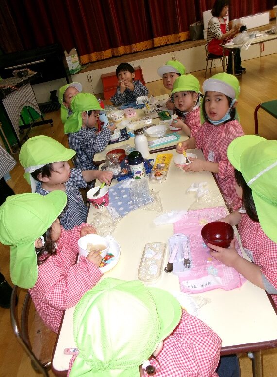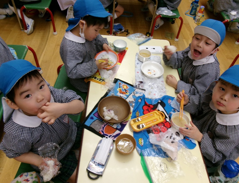 食べものは色々な栄養のグループに分かれます 「少々」と「ひとつまみ」の指を覚えました 自分でおにぎり握りました 「先生!おにぎり、手からはみ出る!」 「ゆかり」2つまみで仕上げました 「めっちゃ おいしい おかわりある?」「あるよ、おかわりはわかめご飯のおにぎり!」 「おいしい!」「おっきい!」 ラップをはずして上手に食べられました ようちえんブログ よかったらシェアしてね! URLをコピーする URLをコピーしました! 令和7年度 3月の園だより 関連記事 2026-2-10 寒い朝 2026-2-9 雪が降りました! 2025-12-26 冬期特別保育 干支絵馬づくり&ちぎってかにぱん 2025-12-22 冬期特別保育 クリスマス製作 ~くびふりサンタ~ 2025-12-19 クリスマス会 2025-12-8 こうま・年少ボール大会 2025-12-5 年中サッカー大会 2025-12-5 年長サッカー大会